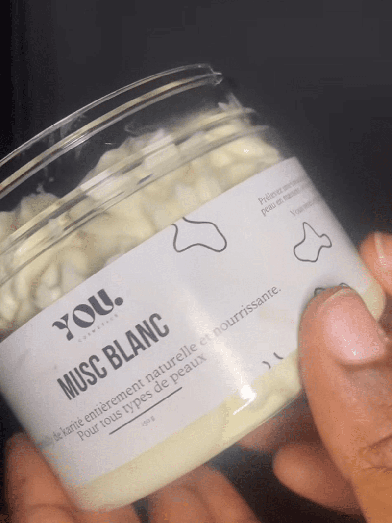 La chantilly de karité senteur Musc blanc est un véritable délice pour la peau ! Cette formule spéciale associe les bienfaits nourrissants du beurre de karité à une fragrance envoûtante de musc blanc. Lorsque vous l’appliquez, cette chantilly fond délicatement sur votre peau, la laissant douce, hydratée et subtilement parfumée. C’est un véritable moment de détente et de plaisir pour vos sens. Vous allez adorer l’effet apaisant et la fragrance envoûtante de cette chantilly de karité.