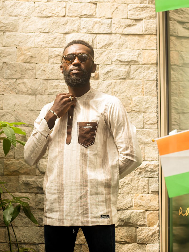 Chemise coton beige deco marron – Nawaha