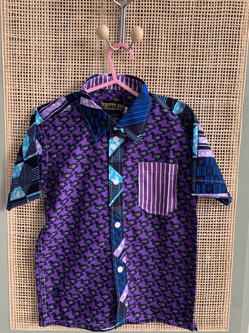 Chemise violet bleu motif poussin + poche rayure violette – 3 ans