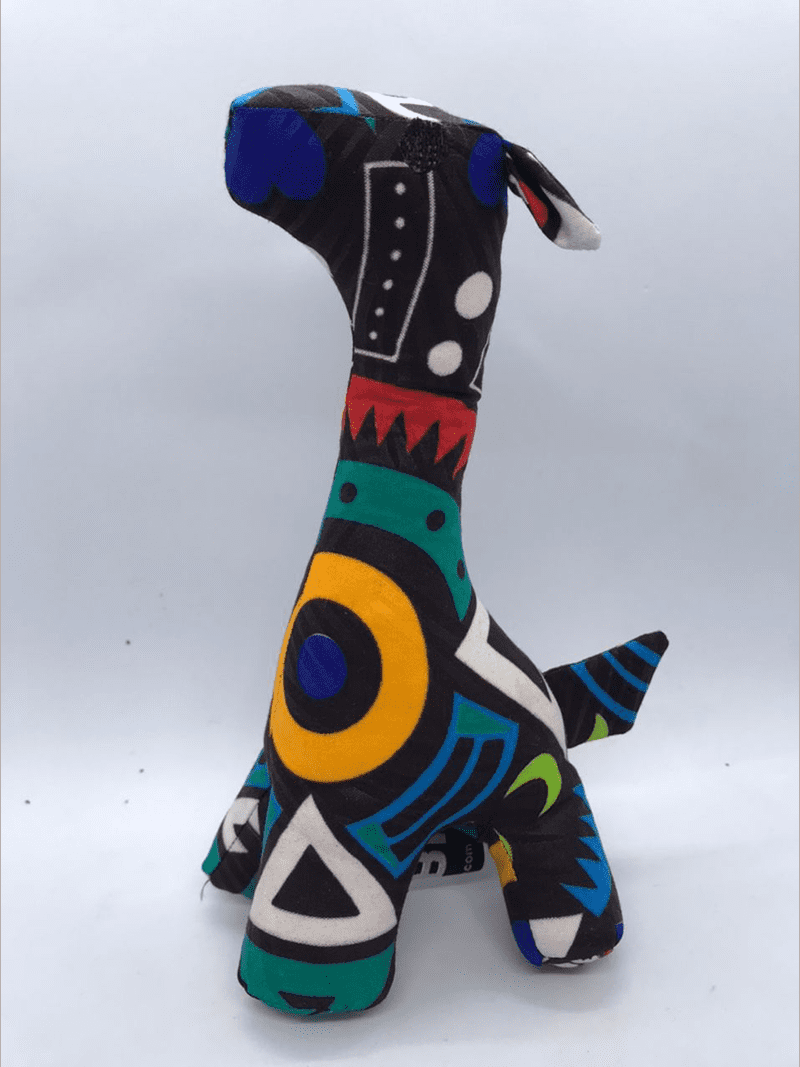 Les peluches en pagne sont des jouets doux et colorés fabriqués à partir de tissu wax, un tissu africain traditionnel.