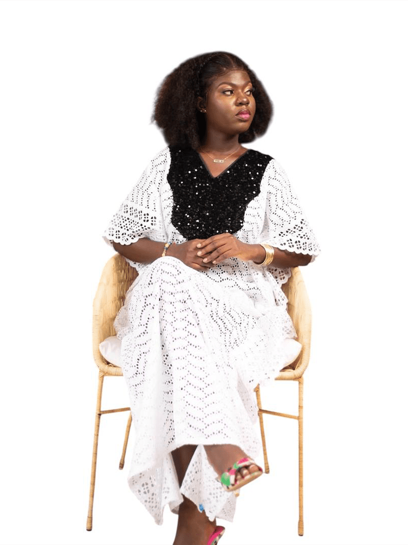 Cette robe boubou en dentelle blanc vous donne une élégance exceptionnelle et un charisme spéciale avec ses strasses a la poitrine.