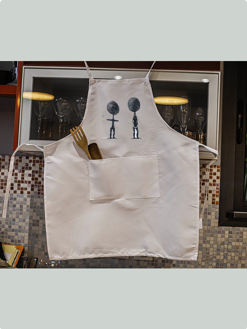 Un magnifique tablier blanc en drill pour apporter une touche d’originalité à vos moments de cuisine entres amis ou en famille. La poupée Ashanti, déesse de la fécondité selon la tradition orale du royaume du Ghana, portait autrefois le nom d’Akua ba. Selon la légende, une jeune femme Ashanti du nom d’Akua ne parvenant pas à avoir d’enfant, suivit les conseils d’un guérisseur et fabriqua une poupée en bois qu’elle traita comme un vrai bébé. Ce geste suscita l’hilarité de ses concitoyens qui la montraient du doigt en s’écriant “regarde l’enfant d’Akua!”. Pourtant, un jour, Akua tomba enceinte et donna naissance à une petite fille en parfaite santé. Son histoire inspira d’autres femmes ayant des difficultés pour concevoir à sculpter de jolies poupées en bois portant le nom d’Akua-ba. Aujourd’hui encore, les femmes Ashanti au Ghana et en Côte d’Ivoire ont recours à l’utilisation de ces poupées, qui assurent à la fois leur fertilité et le bon développement de la grossesse.
