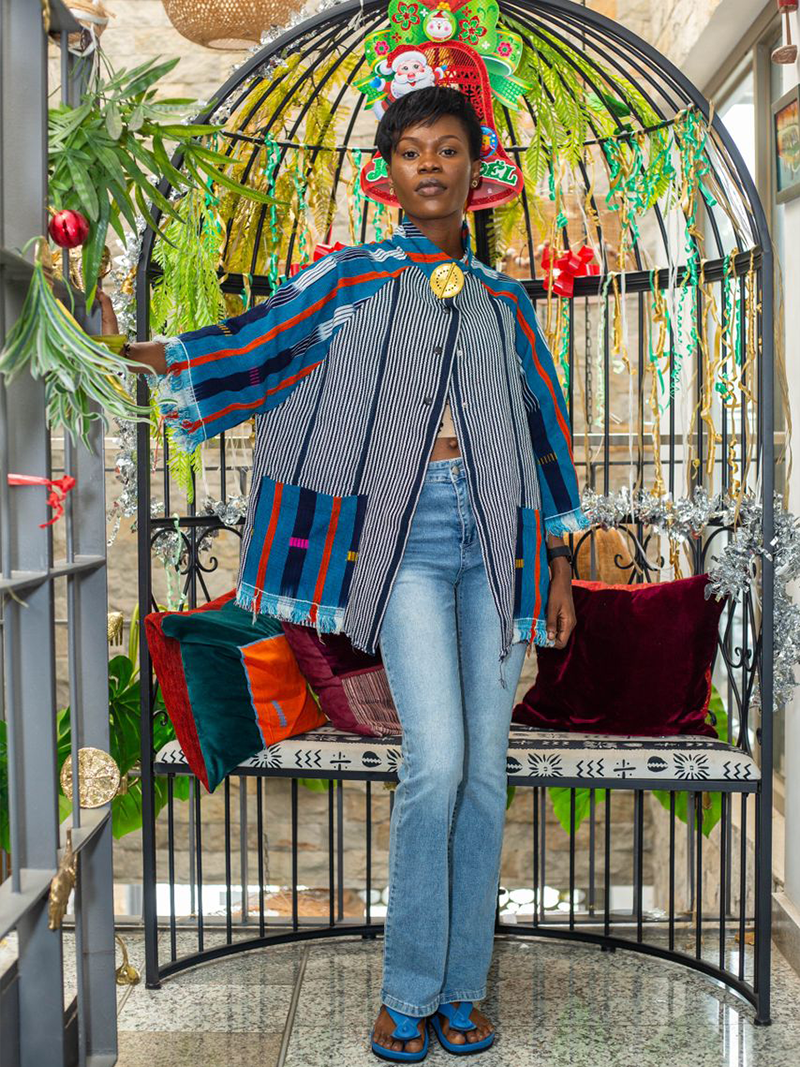 Veste kita bleu orange avec poids baoulé
